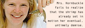 shrimp 01.15.02 - the one about light-up toe gems 01.22.02 - the one about lady bugs 01.30.02 - the one about "progress thru education" |
